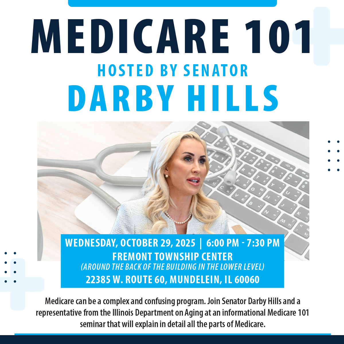 Latest News Confused about Medicare? You are not alone! State Senator Darby Hills is hosting a Medicare 101 Seminar with a representative from the Illinois Department on Aging to help residents learn the ins October 28, 2025