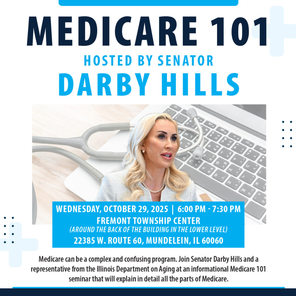 State Senator Darby Hills is hosting a Medicare 101 Seminar with a representative from the Illinois Department on Aging to help residents learn the ins and outs of coverage options and get their questions answered.
