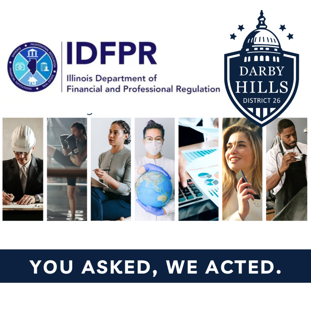 We’ve heard from many constituents needing help with professional licensing through the Illinois Department of Financial and Professional Regulation. From nurses to therapists to nutritionists, our office has been proud to assist. If you ever run into challenges with an application or licensing process, don’t hesitate to reach out.
