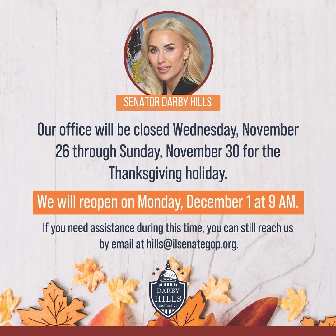 Thanksgiving Holiday Hours Update My district office will be closed November 26th-30th as we take some time to rest, recharge, and enjoy the holiday. We